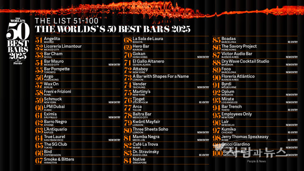올해로 17회를 맞는 The World's 50 Best Bars 2025는 이번엔 홍콩에서 전 세계 음료인들이 모여 세계 최고의 칵테일을 선보일 예정이다. 50 Best는 51-100 명단을 통해 바와 칵테일 명소를 더욱 다양하게 조명하며 전 세계에 그 우수성을 널리 알리고 있다.