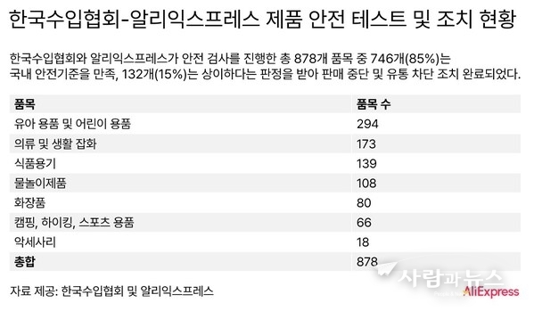 알리익스프레스는 2024년 9월 한국수입협회와 업무협약을 체결한 이후 2025년 8월까지 진행된 검사에서 제품들이 국내 안전기준을 통과해 시장에서 안전하게 유통하고 있다. 기준 미달 제품에 대해서는 즉시 판매 중단 및 재유통 차단 조치로 소비자 안전을 확보했다.