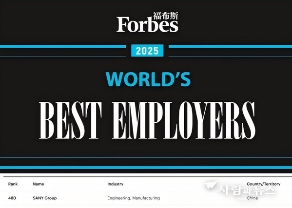 베이징 2025년 10월 17일 -- 직원 복지, 인재 육성, 브랜드 구축 및 글로벌화에 지속적으로 주력해 온 산이 그룹(SANY Group)이 포브스(Forbes)월드브랜드랩(World Brand Lab )이 발표하는 글로벌 기업 순위에 동시에 이름을 올리며, 각각 '2025 세계 최고의 직장(World's Best Employer)'과 '2025 아시아에서 가장 영향력 있는 브랜드(Asia's Most Influential Brand)'로 선정됐다. 이번 수상으로 산이는 강력한 글로벌 경쟁력과 확대되는 브랜드 영향력을 증명했다.