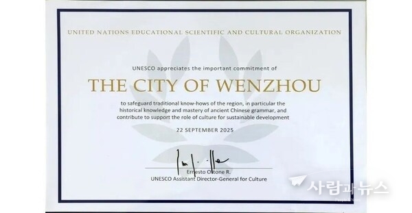 사람과뉴스 전재은 기자 | 베이징 2025년 11월 30일 -- 중국 저장성 동부 소재 원저우시가 최근 문화유산 보존과 문화, 관광의 결합, 문화를 통한 지속 가능한 발전이라는 실질적 성과를 인정받아 유네스코로부터 연이어 표창을 받았다.
