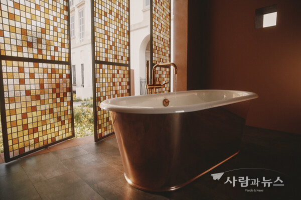 배스하우스에 들어서면 방문객은 콜러의 상징적인 독립형 에나멜 주철 욕조를 새롭게 해석한 신작 레버리(Reverie)를 마주하게 된다. 공간의 중심 요소 역할을 하는 구리 외피를 입힌 제품으로 욕조를 감싸고 있다. 재활용 소재가 80% 이상 들어갔으며 지속 가능한 장인정신의 유산과 오랜 사용을 염두에 둔 설계가 두드러진다. 콜러가 욕조 디자인의 핵심 소재로 구리를 사용한 것은 이번이 처음으로, 이 카테고리에 새로운 차원을 더해 준다.