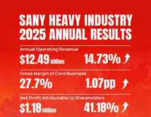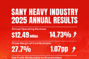베이징, 2026년 4월 9일 -- 산이 중공업(SANY Heavy Industry)(600031.SH, 06031.HK)이 2025년 재무 실적을 발표했다. 매출은 전년 대비 14.73% 증가한 124억 9000만 달러를 기록했다. 주주 귀속 순이익은 41.18% 상승한 11억 8000만 달러를 달성했다. 영업 활동으로 인한 순 현금 창출액은 전년 대비 34.84% 증가한 28억 달러를 기록했다. 모든 주요 부문에서 성장세를 나타냈다. 핵심 사업인 굴착기 매출은 전년 대비 13.73% 증가한 48억 3000만 달러를 기록했다. 콘크리트 기계 매출은 9.53% 증가한 22억 달러를, 호이스팅 기계 매출은 18.67% 상승한 21억 8000만 달러를 달성했다. 도로 기계 매출은 25.18% 증가한 5억 3200만 달러를 기록했다. 파일링 기계는 가장 빠른 성장세를 보이며 매출이 35.81% 급증한 3억 9200만 달러를 달성했다. 기타 부문은 13.28% 증가한 23억 5000만 달러의 매출을 올렸다. 회사의 순이익률은 전년 대비 1.7%포인트 상승한 9.5%로 개선되었으며, 견고한 영업 현금 흐름은 수익