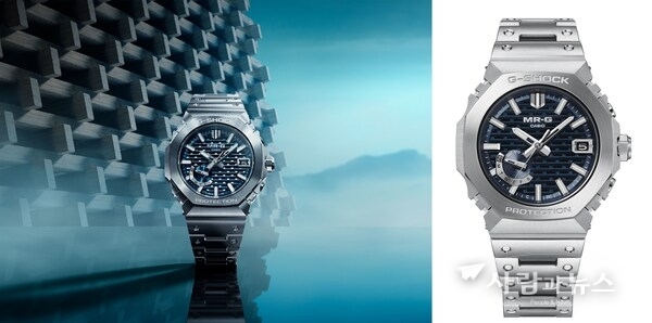 도쿄 2026년 1월 8일 -- 카시오 컴퓨터(Casio Computer Co., Ltd.)가 오늘 내충격 구조의 시계 브랜드인 지샥(G-SHOCK)의 최고급 라인에 속하는 신형 MR-G를 출시한다고 발표했다. 신형 MRG-B2100D는 일본의 전통적인 목공예 이음 기법인 기구미(きぐみ, 木組み)*1에서 착안한 입체 격자 무늬 다이얼과 우아한 블루 계열 색상인 하나다이로(はなだいろ, 縹色)가 조화를 이루고 있다.