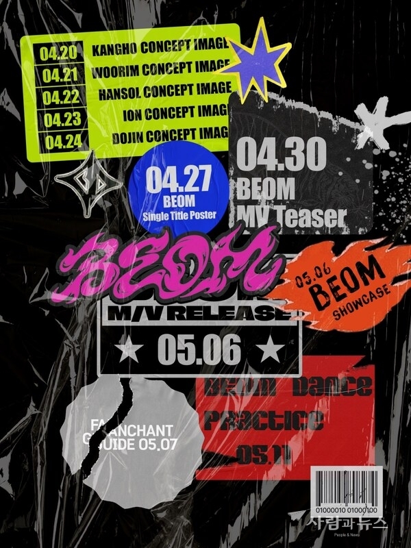 이와 함께 4월 27일에는 데뷔 싱글 '범(BEOM)'의 타이틀 포스터를 공개하고, 4월 30일에는 뮤직비디오 티저를 오픈하며 기대감을 한층 고조시킬 예정이다. 이어 5월 6일에는 '범(BEOM)' 뮤직비디오를 공개하고, 같은 날 온라인을 통해 데뷔 쇼케이스를 진행하며 팬들과 첫 공식 만남을 갖는다. 이후 5월 7일 팬챈트 가이드, 5월 11일 댄스 연습 영상을 순차적으로 공개하며 데뷔 열기를 이어갈 계획이다.
