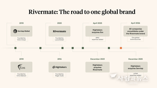 런던 및 아랍에미리트 두바이, 2026년 4월 29일 -- 하이테커스(Hightekers), 이오스 글로벌 익스팬션(Eos Global Expansion), 서비압 글로벌(Serviap Global), 리버메이트(Rivermate)가 4월 28일 단일 글로벌 브랜드인 리버메이트로 기록상 고용주(EOR) 서비스를 통합한다고 발표했다.